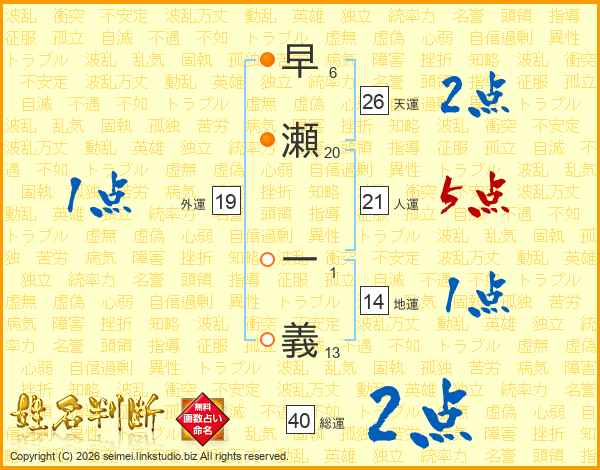 早瀬一義さんの人運は21画の5点!