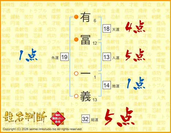 有冨一義さんの総運は32画の5点!