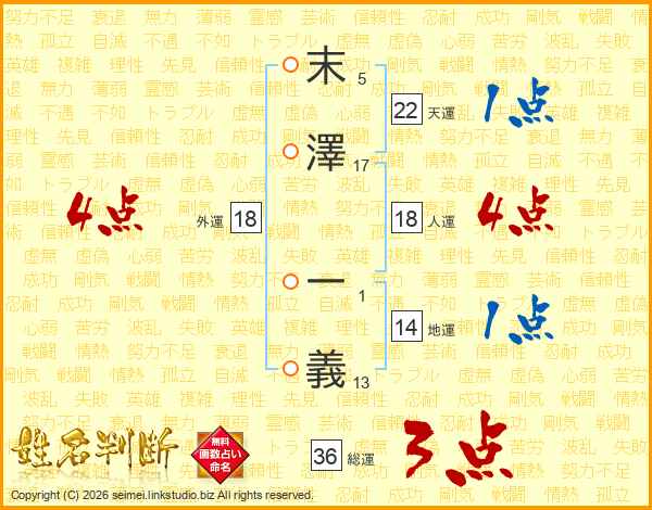 末澤一義さんの人運は18画の4点!