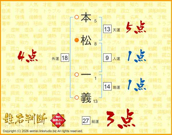 本松一義さんの天運は13画の5点!