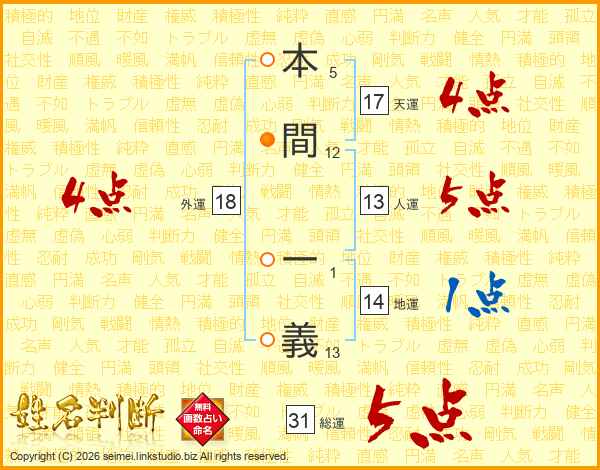 本間一義さんの総運は31画の5点!