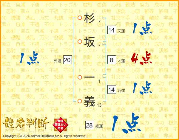 杉坂一義さんの人運は8画の4点!