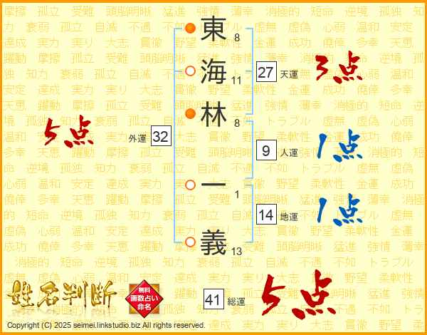 東海林一義さんの天運は27画の3点!