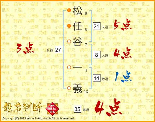 松(8画)任(6画)谷(7画) 一(1画)義(13画)