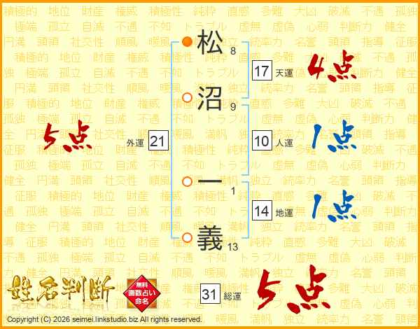 松沼一義さんの総運は31画の5点!