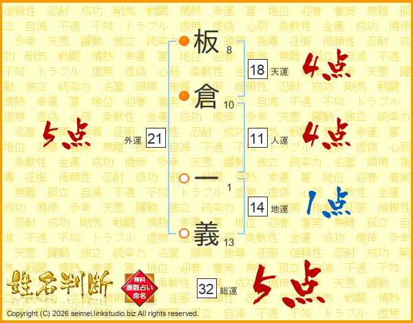 板倉一義さんの総運は32画の5点!