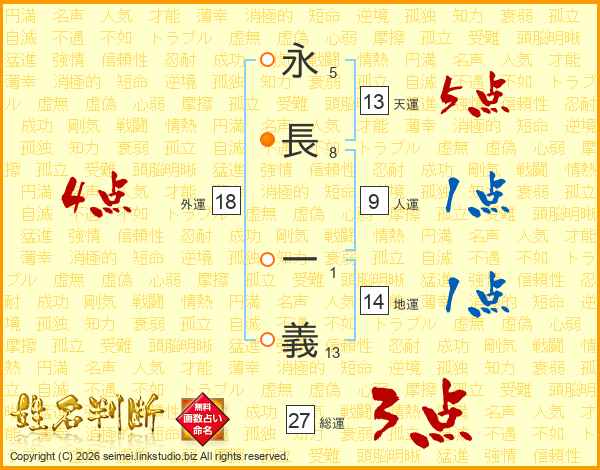 永(5画)長(8画) 一(1画)義(13画)
