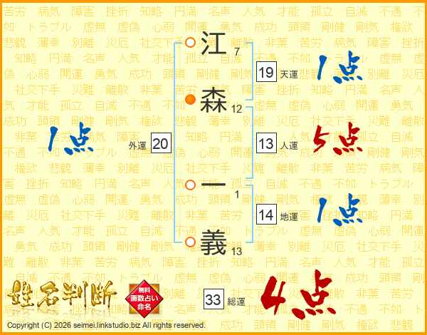 江森一義さんの総運は33画の4点!