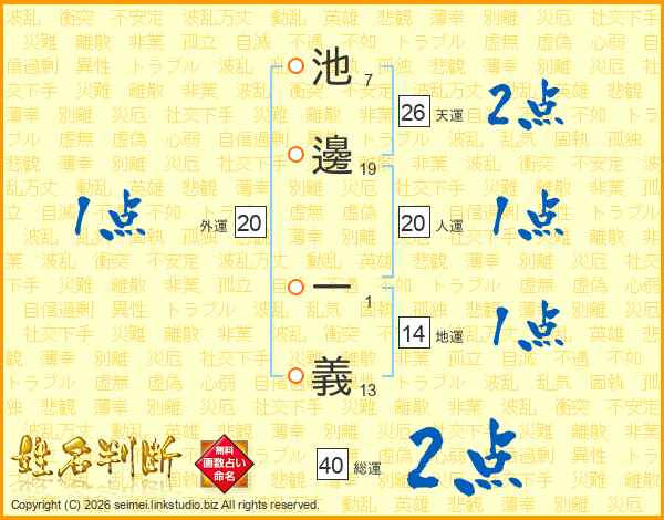 池邊一義さんの天運は26画の2点!