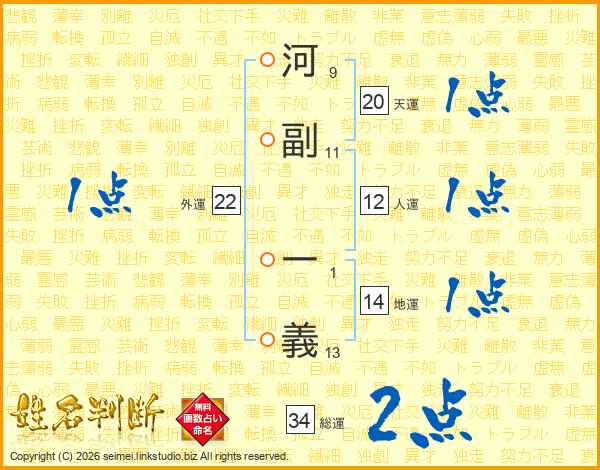 河副一義さんの地運は14画の1点!