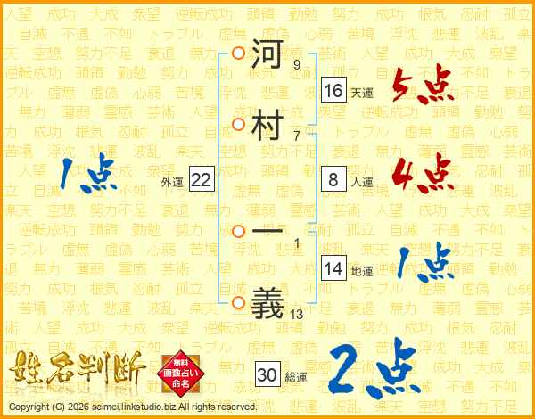 河村一義さんの総運は30画の2点!