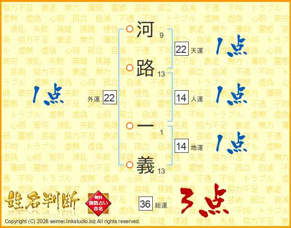 河路一義さんの天運は22画の1点!