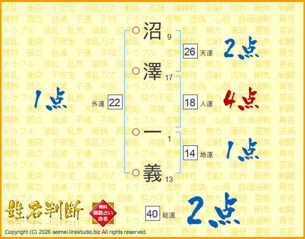 沼澤一義さんの天運は26画の2点!