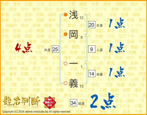 浅岡一義さんの天運は20画の1点!