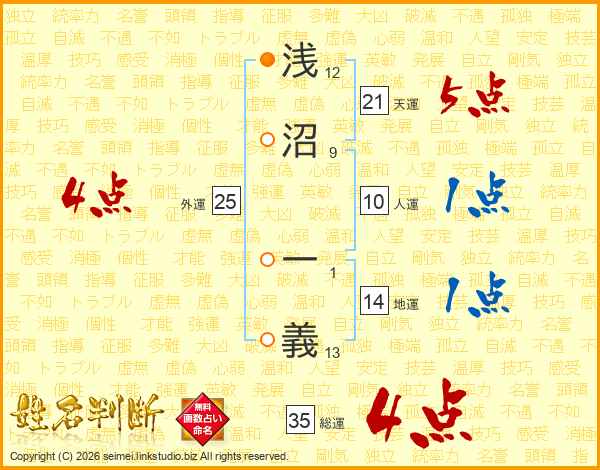 浅沼一義さんの地運は14画の1点!