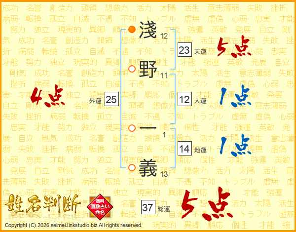 淺野一義さんの総運は37画の5点!