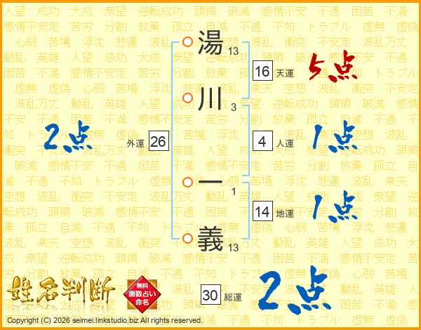 湯川一義さんの総運は30画の2点!