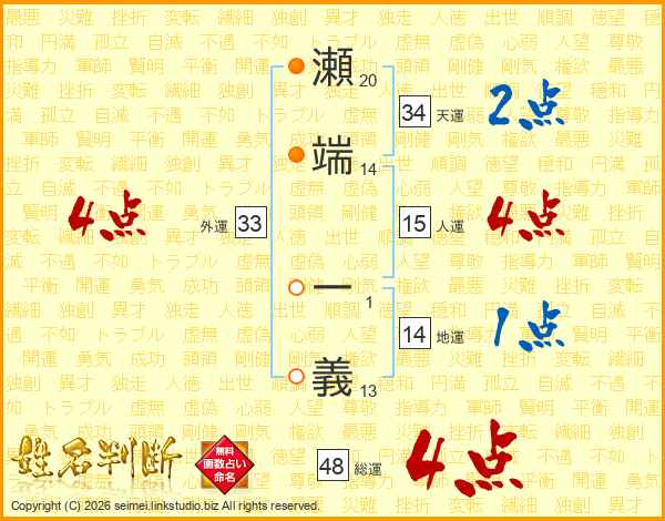 瀬端一義さんの人運は15画の4点!