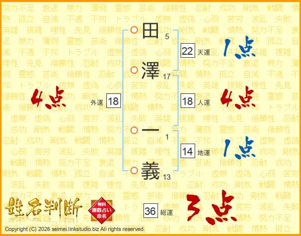 田澤一義さんの総運は36画の3点!