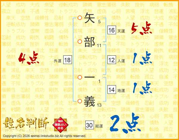 矢部一義さんの総運は30画の2点!