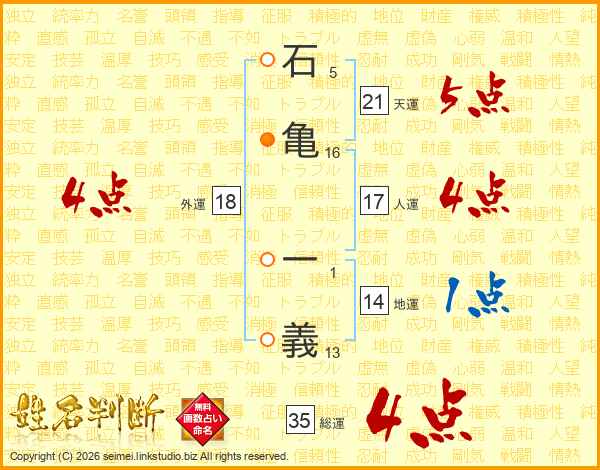 石亀一義さんの総運は35画の4点!