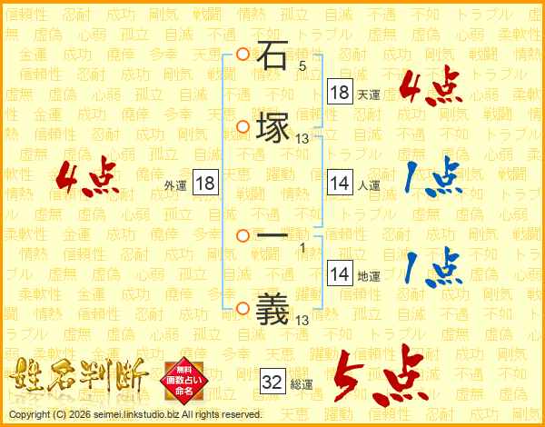 石塚一義さんの総運は32画の5点!