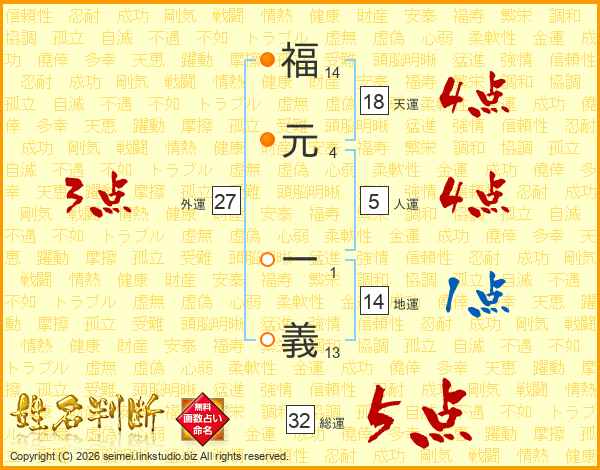 福(14画)元(4画) 一(1画)義(13画)