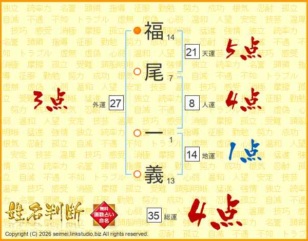 福尾一義さんの総運は35画の4点!