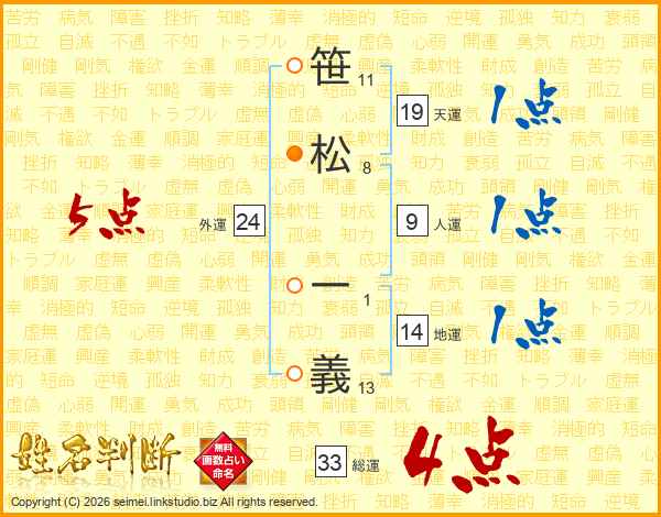 笹松一義さんの総運は33画の4点!