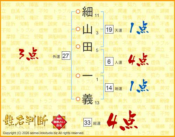 細山田一義さんの総運は33画の4点!