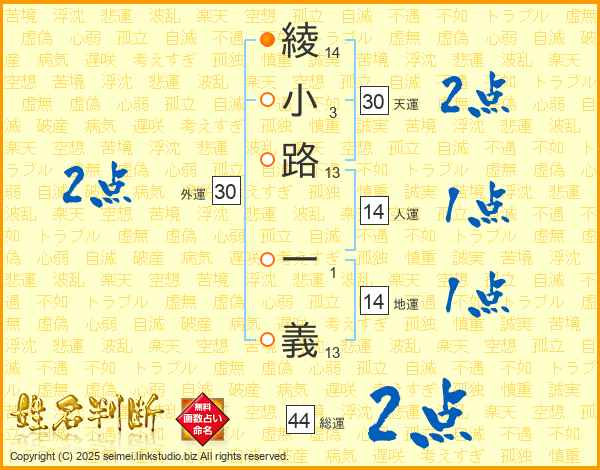 綾(14画)小(3画)路(13画) 一(1画)義(13画)