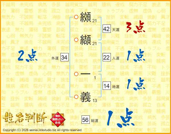 纐纈一義さんの人運は22画の1点!