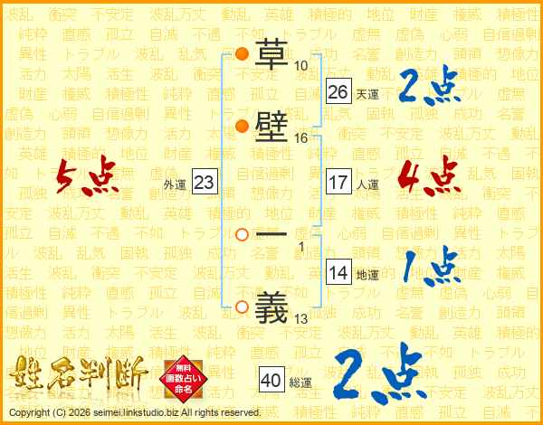 草壁一義さんの天運は26画の2点!