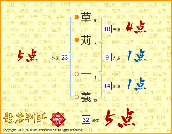 草苅一義さんの総運は32画の5点!