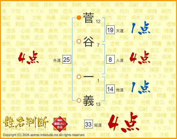 菅谷一義さんの地運は14画の1点!