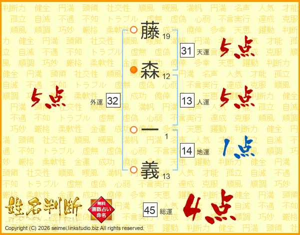 藤森一義さんの外運は32画の5点!