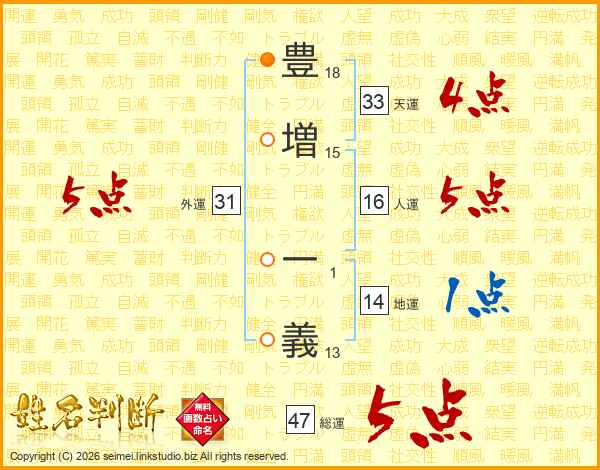 豊増一義さんの総運は47画の5点!