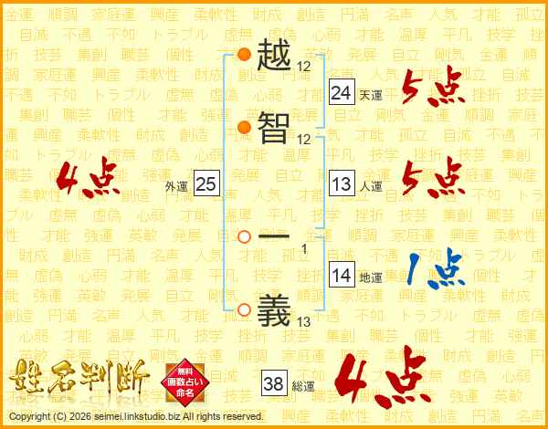 越(12画)智(12画) 一(1画)義(13画)