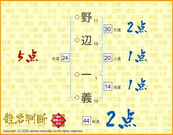 野辺一義さんの人運は20画の1点!