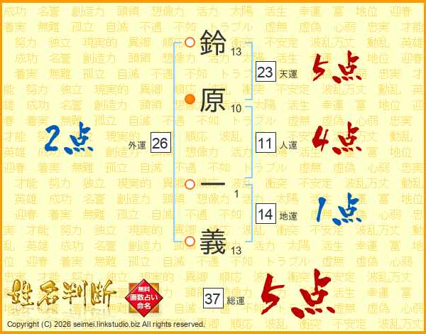 鈴原一義さんの総運は37画の5点!