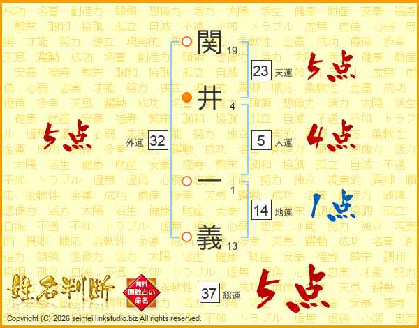 関井一義さんの総運は37画の5点!
