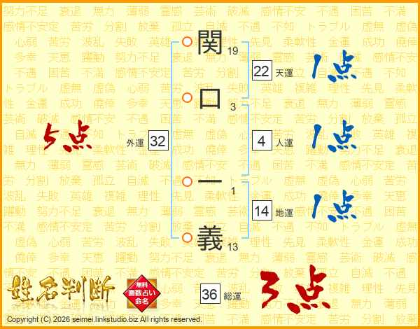 関口一義さんの総運は36画の3点!