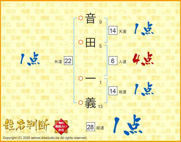 音田一義さんの天運は14画の1点!