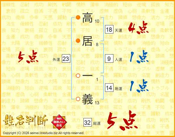 高居一義さんの総運は32画の5点!