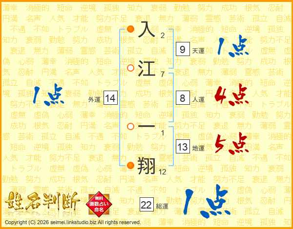 入江一翔さんの地運は13画の5点!