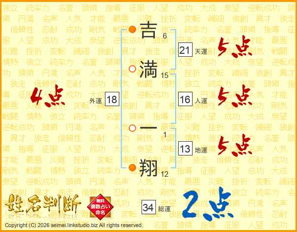 吉満一翔さんの総運は34画の2点!