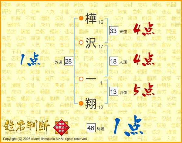 樺(16画)沢(17画) 一(1画)翔(12画)
