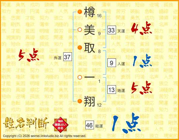 樽美取一翔さんの総運は46画の1点!