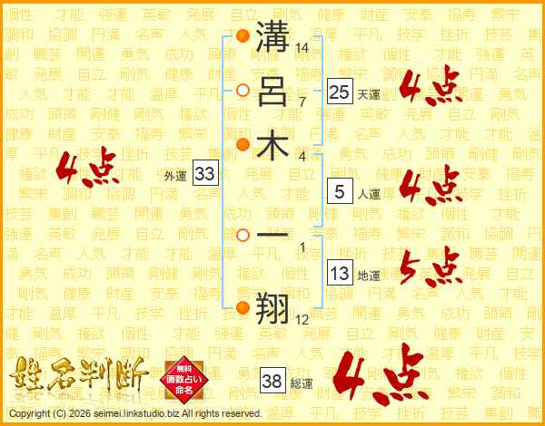 溝(14画)呂(7画)木(4画) 一(1画)翔(12画)