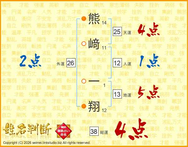 熊﨑一翔さんの総運は38画の4点!